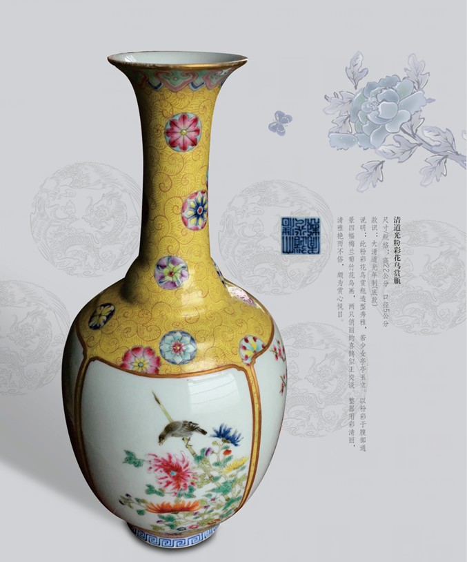 • (清乾隆) 磁胎洋彩青地金花魚(yú)遊轉(zhuǎn)心瓶(清乾隆) 磁胎洋彩青地金花魚(yú)遊轉(zhuǎn)心瓶